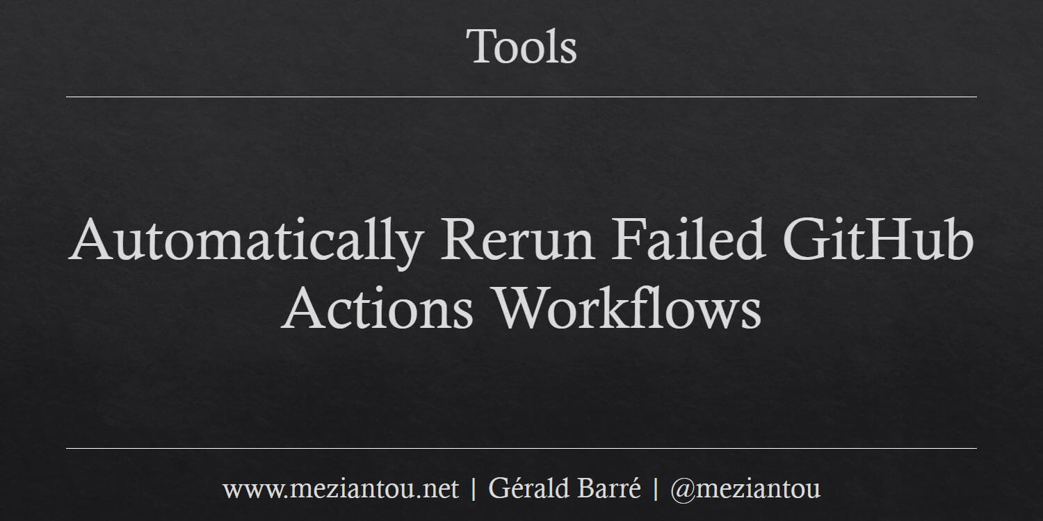 Automatically Rerun Failed GitHub Actions Workflows | https://www.meziantou.net/automatically-rerun-failed-github-actions-workflows.htm GitHub Actions doesn't provide a built-in way to rerun a run automatically. If you have some flakiness in your jobs, this can be a pain as you have to rerun the workflow manually. Hopefully, you can u... |